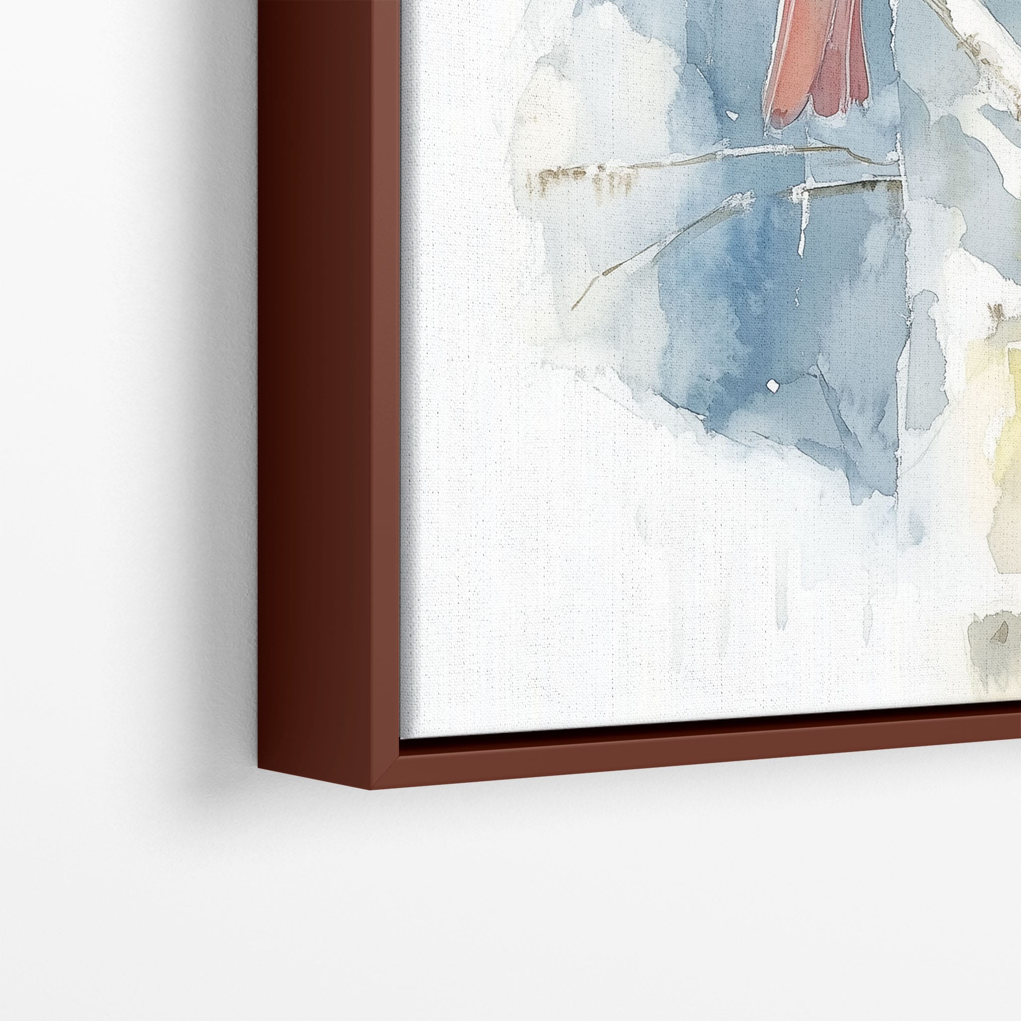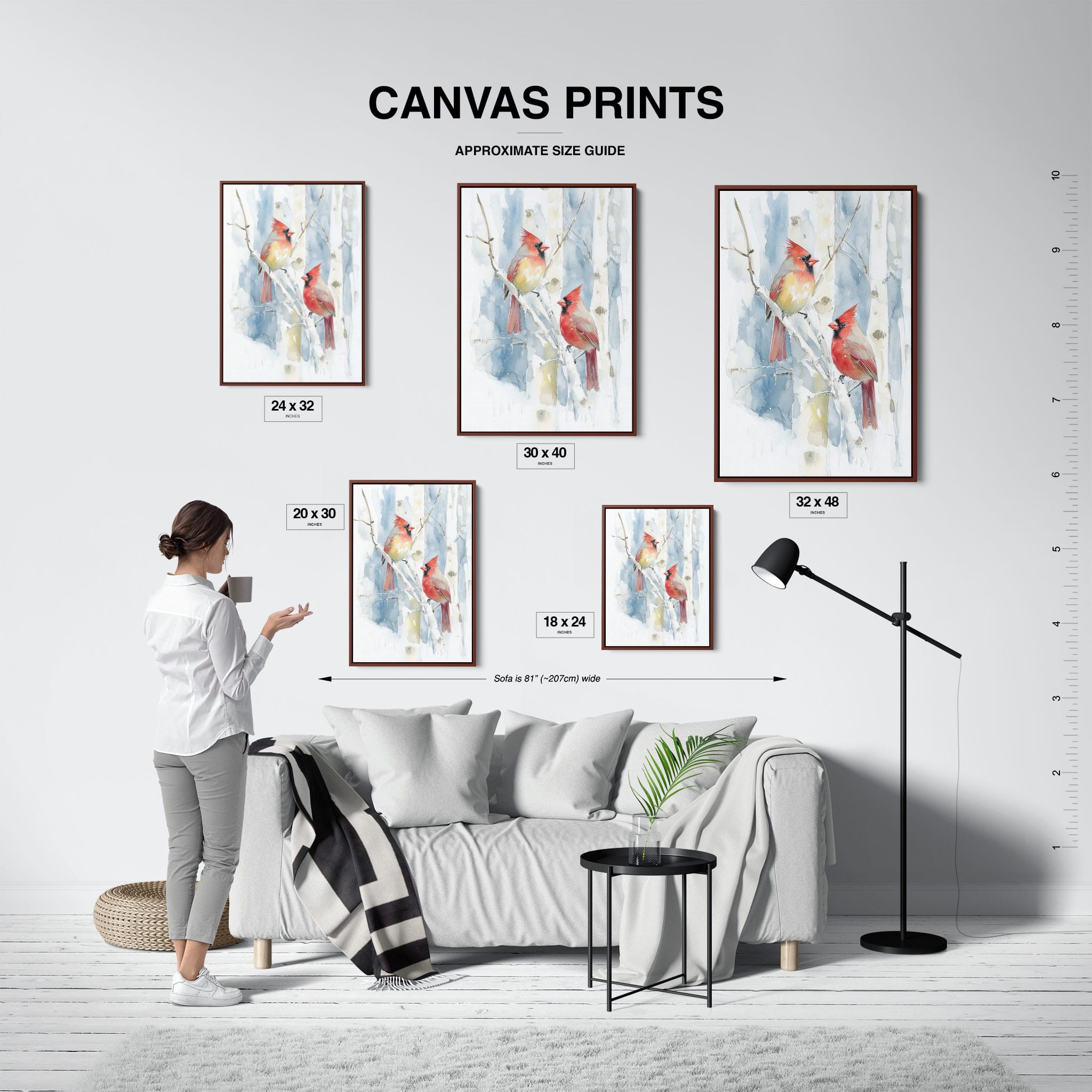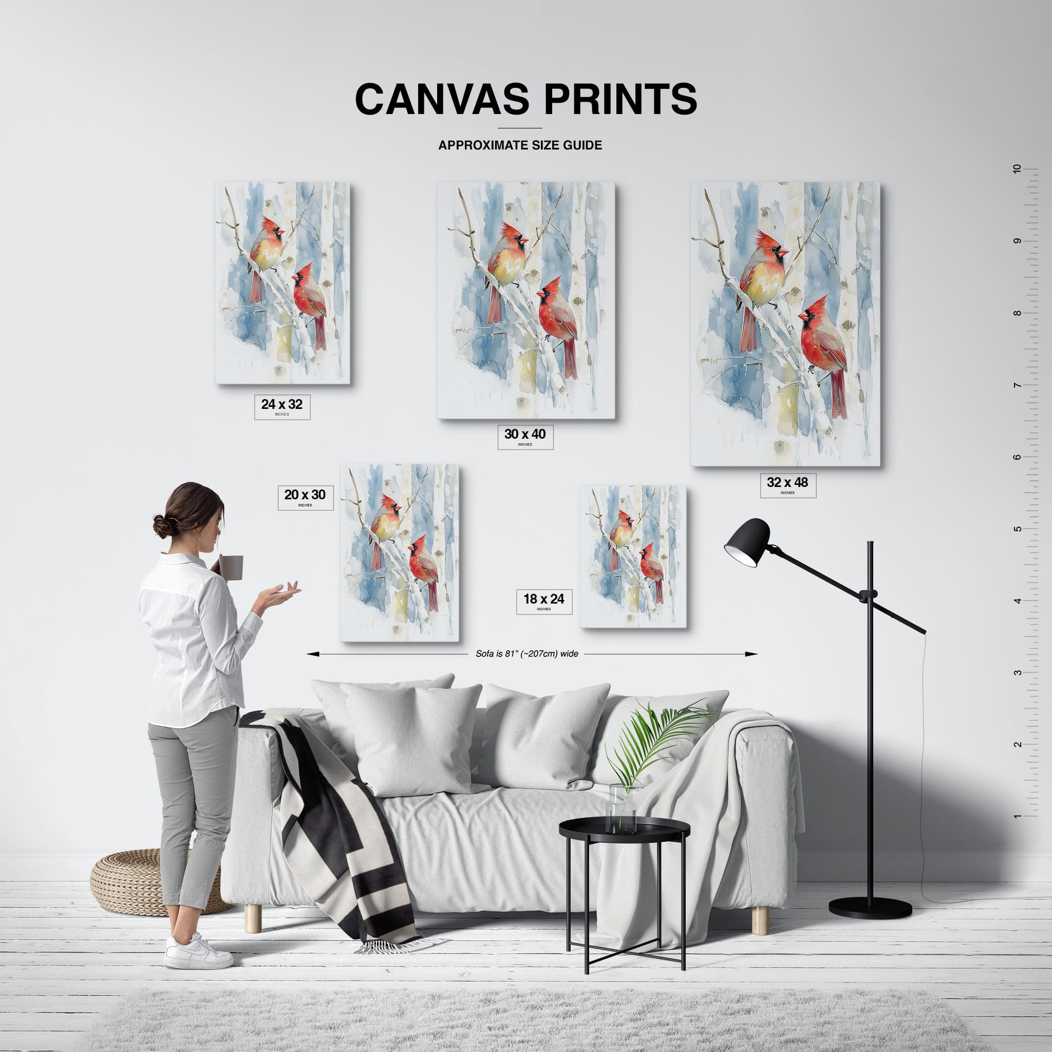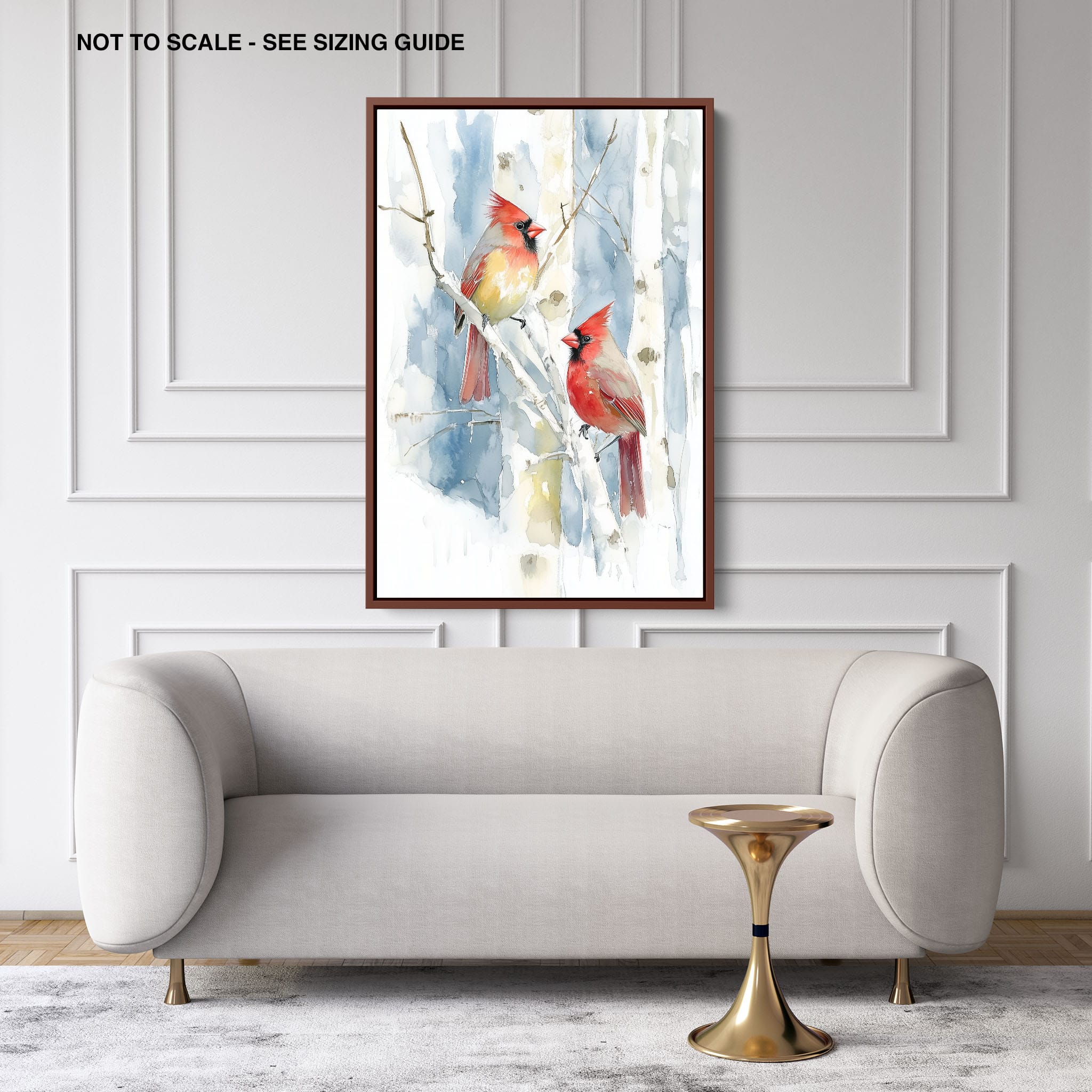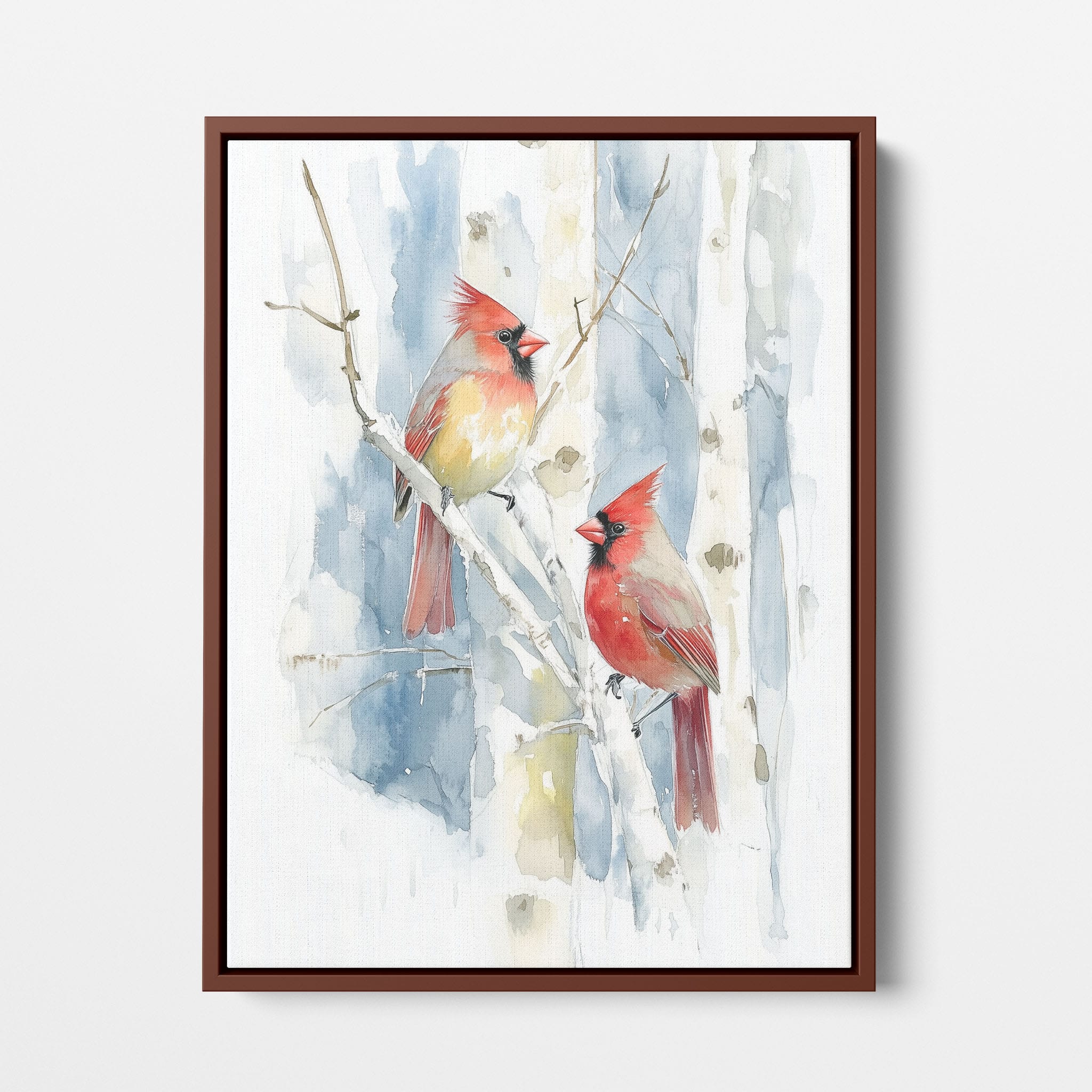 This stunning watercolor artwork captures the natural elegance of two cardinals perched delicately on winter branches. Their vibrant red plumage contrasts beautifully against the softly blended blues and neutrals of the background, invoking a serene yet playful impressionist vibe. Ideal for any bird lover or art aficionado, this piece brings a touch of whimsy and color to any room. Transform your space with this lovely depiction of nature's simplicity and beauty. Perfect for both modern and rustic decors, it is a must-have for those who appreciate art that combines realism with a touch of the fantastical.