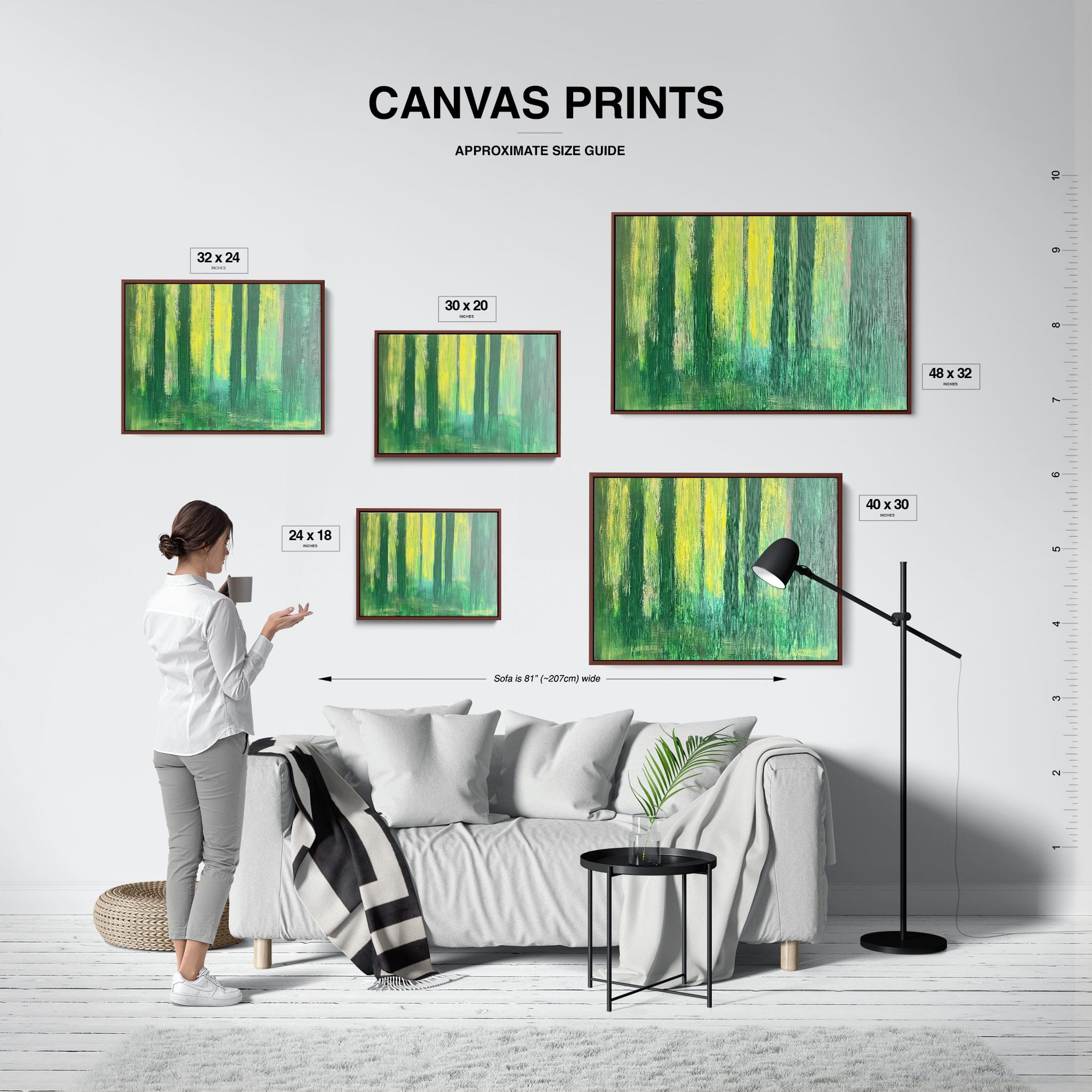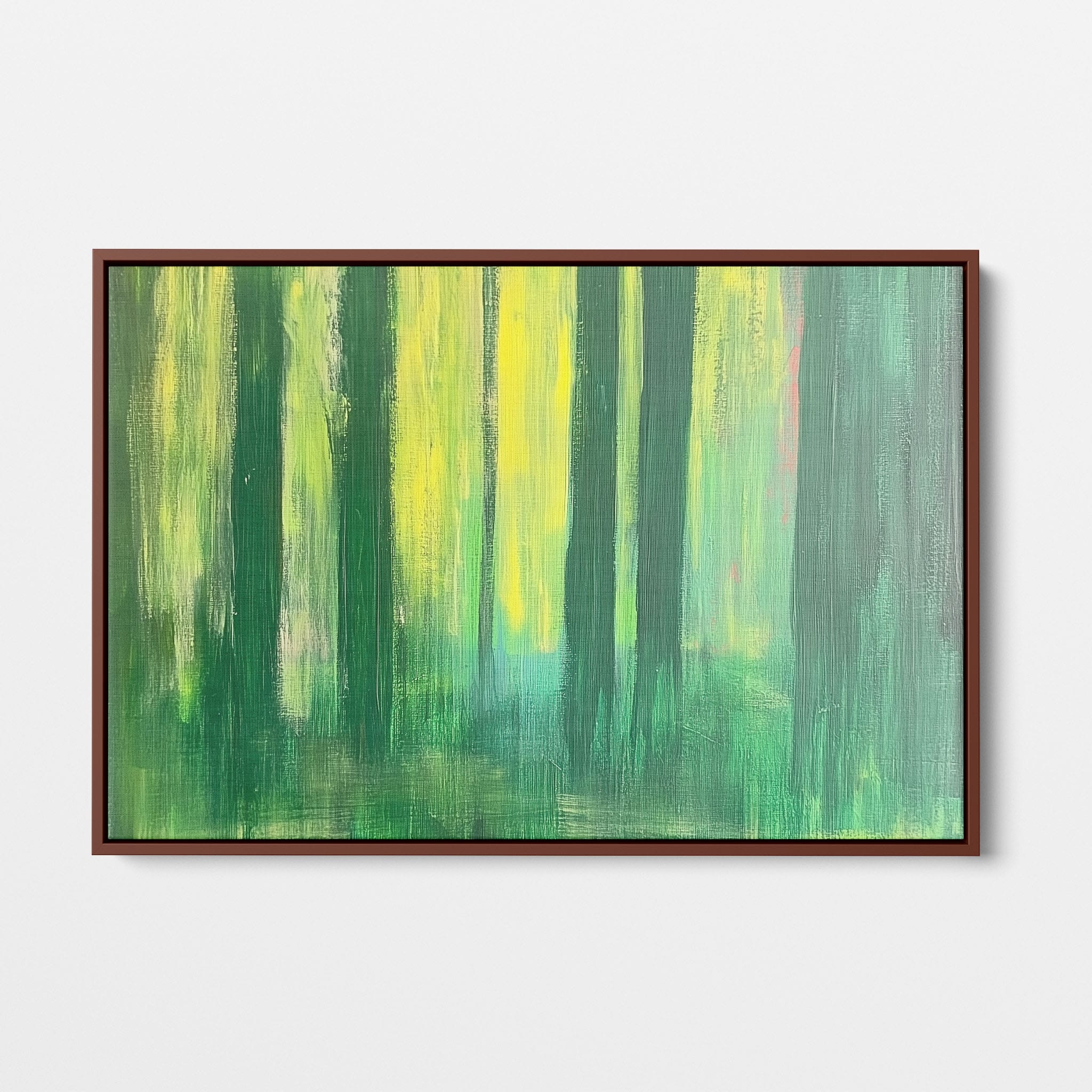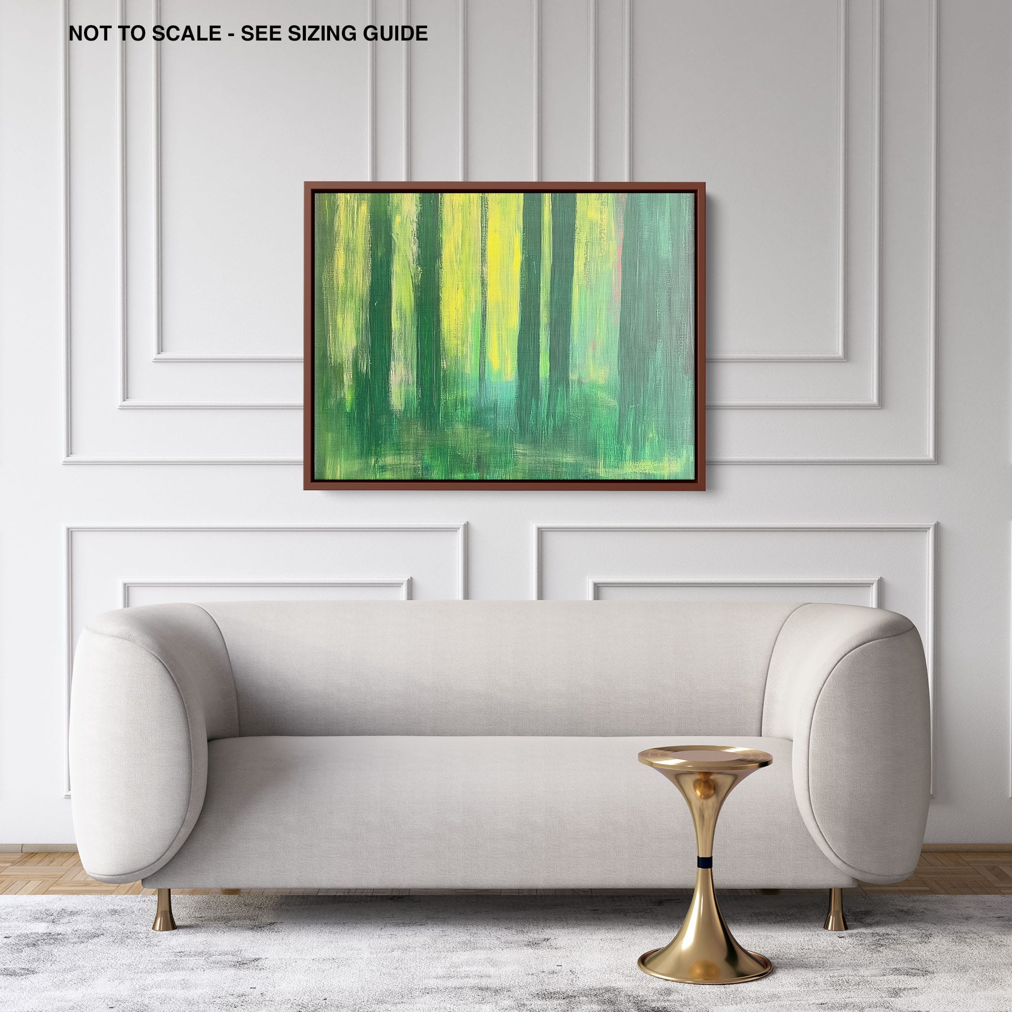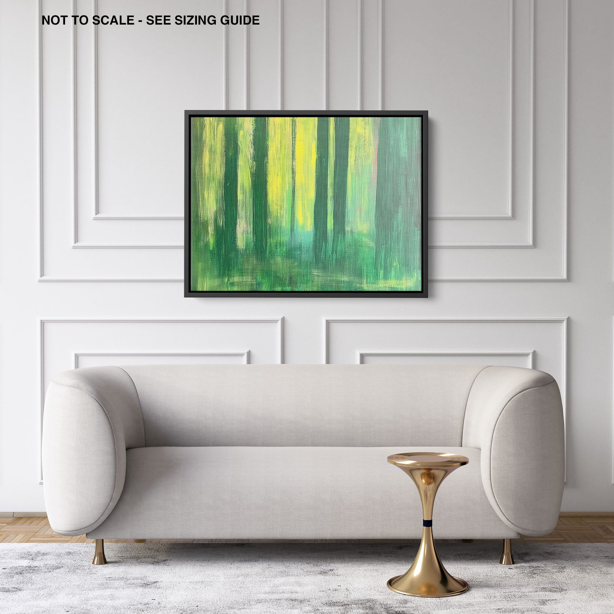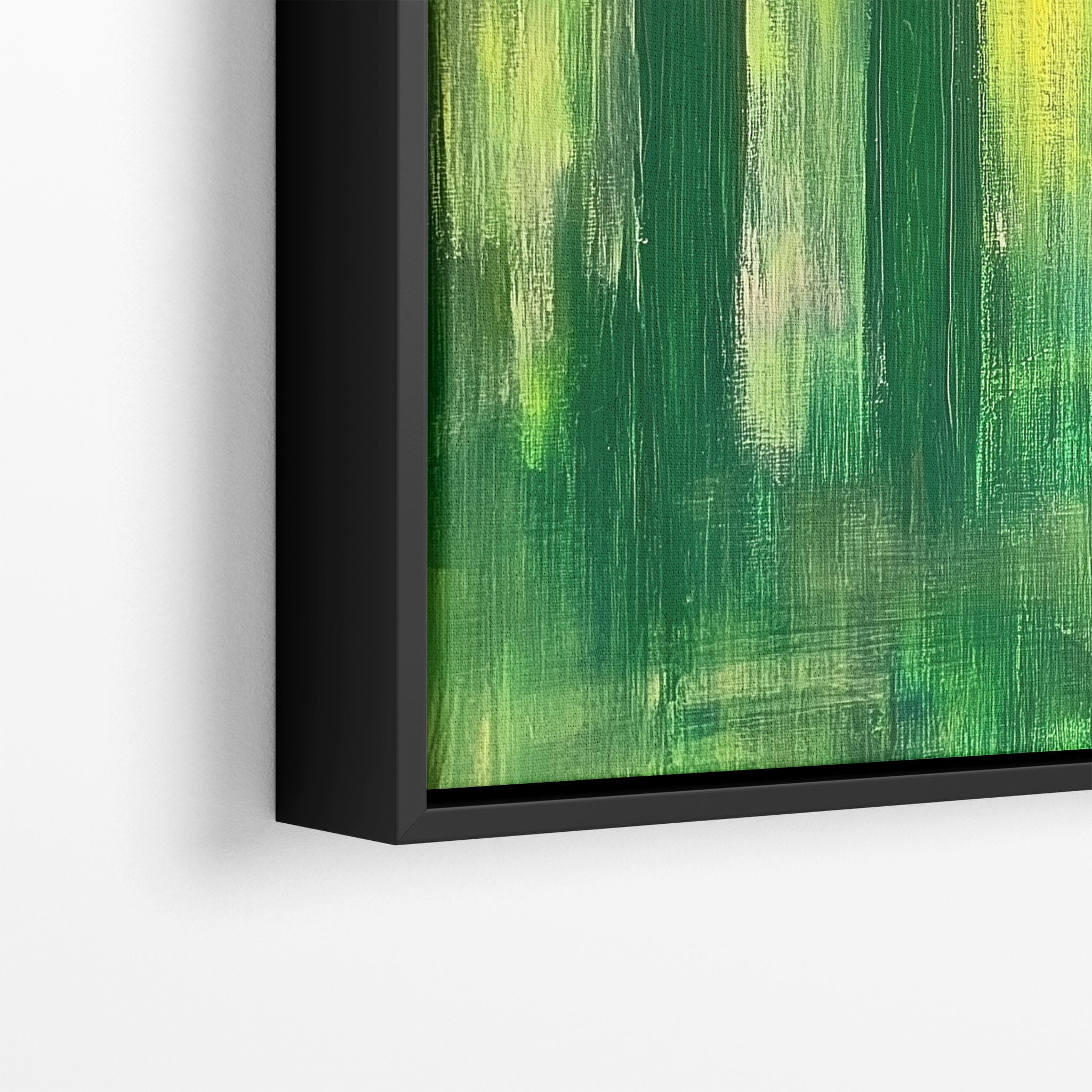 This painting captures the serene essence of a forest through bold strokes and vibrant shades of green. The abstract depiction uses impressionistic influences to evoke the varying light and shadows found within woodland realms. Its modern take on a natural landscape makes it ideal for any space that seeks a touch of tranquility paired with contemporary artistic flair. Add this piece to your décor to bring a fresh, lively energy to any room. Perfect for art lovers seeking a blend of environmental beauty and abstract artistry in their home or office.